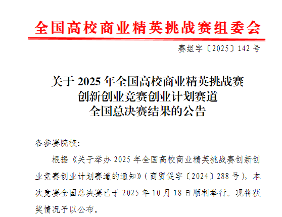 • 【学生风采】我校学子在2025年全国高校商业精英挑战赛创新创业竞赛创业计划赛道中荣获佳绩